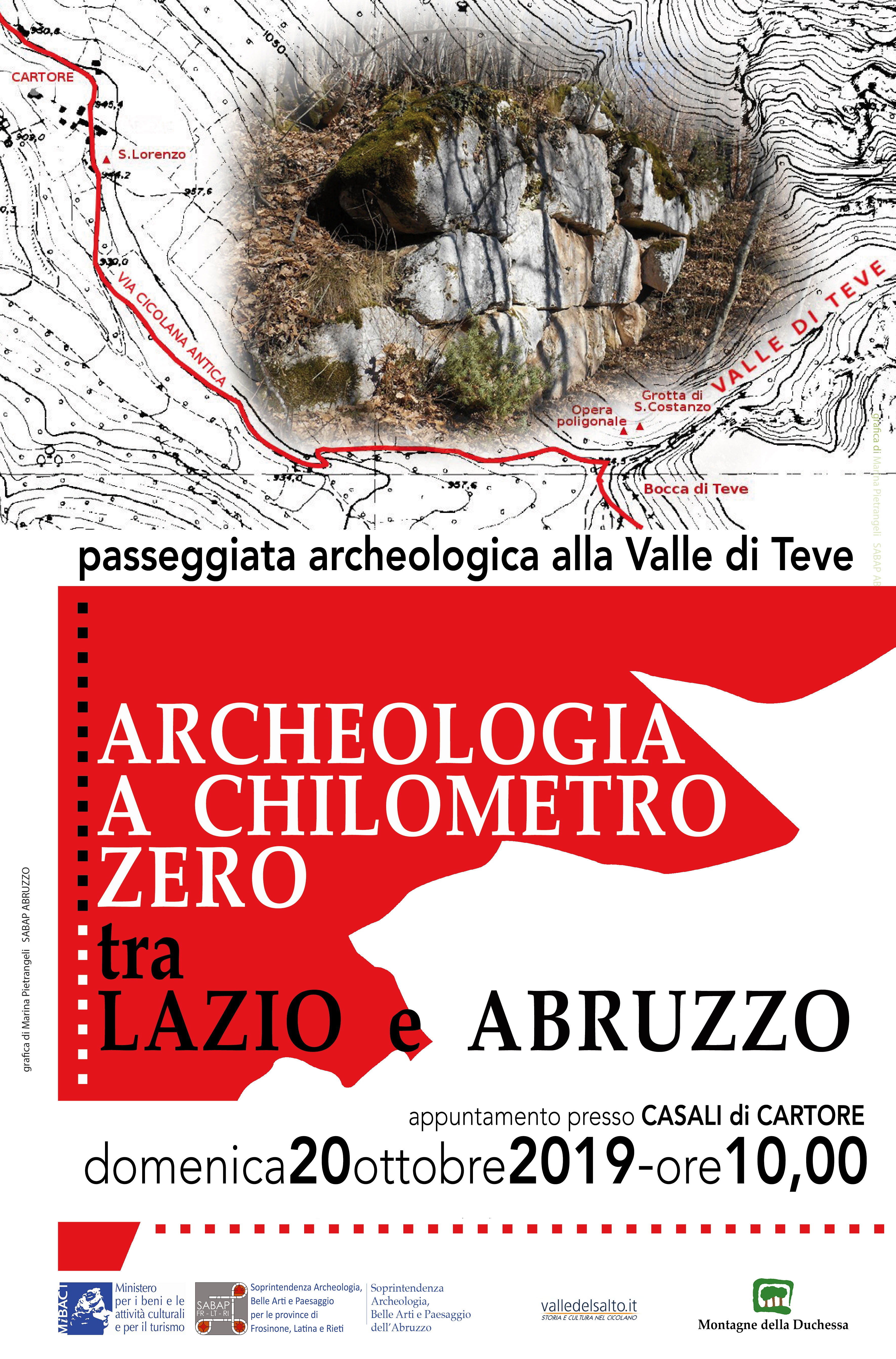 La Soprintendenza Archeologia, Belle Arti e Paesaggio per le province di Frosinone, Latina e Rieti, in collaborazione con la Soprintendenza Archeologia, Belle Arti e Paesaggio dell’Abruzzo, organizza per la mattinata di domenica 20 ottobre una passeggiata archeologica alla Valle di Teve, nel comune di Borgorose (RI), alla scoperta delle murature in opera poligonale, all’interno della Riserva Naturale Montagne della Duchessa. Il percorso si snoderà tra i casali di Cartore, dove sarà allestita una mostra dedicata alla mura in opera poligonale della Valle del Salto, a cura dell’organizzazione di volontariato “valledelasalto.it”, e lo sbocco della Valle di Teve sulla Conca Cicolana. Il sito si trova ai piedi del massiccio della Duchessa ed è caratterizzato da un tratto di muraglione in grandi blocchi poligonali e da due ambienti interpretabili come cisterne, una a pianta circolare e l’altra a pianta rettangolare. In mancanza di un’analisi dettagliata del complesso, si possono avanzare soltanto ipotesi circa la natura di esso, che potrebbe essere identificato con un santuario connesso con la via della transumanza, che dalla Conca Aquilana, passando per il Cicolano, consentiva di trasferire le greggi verso l’area del Fucino e presumibilmente ancora più a sud.