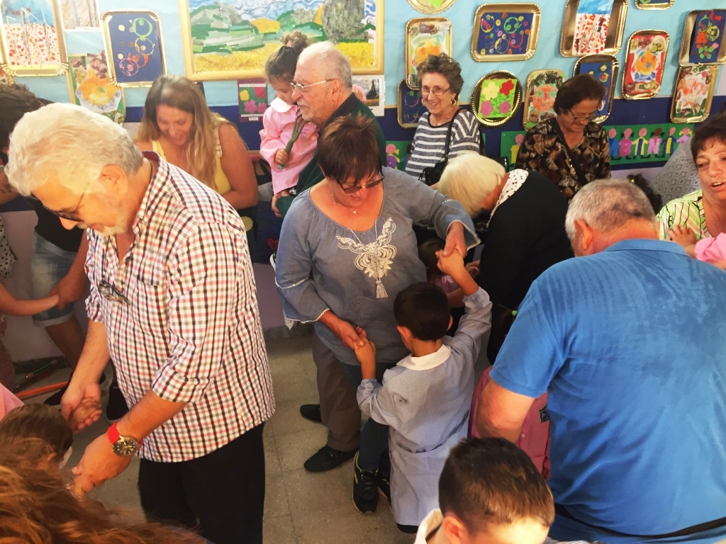 A metà mattinata siamo tutti rientrati e in corridoio nonni e nipoti hanno ballato il “cha cha dei nonni” e per finire, in ogni sezione, i bambini hanno consegnato ai nonni un pensierino preparato da loro stessi.