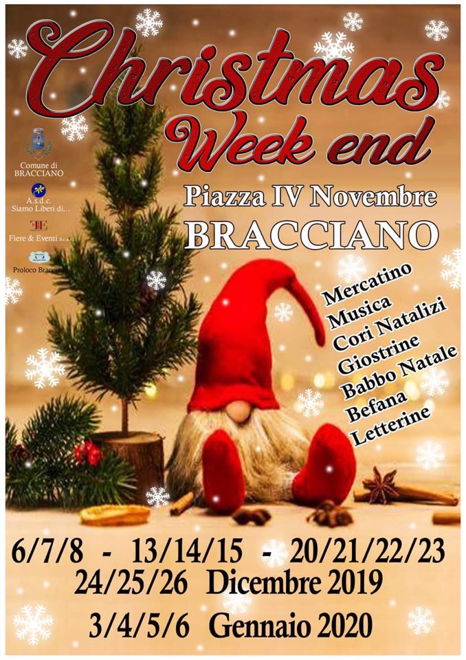 Fine setttimana con il mercatino di Natale a Bracciano. Anche per queste festività sono tante le date: si inizia nel week end da venerd’ 6 a domenica 8. In piazza IV Novembre sarà allestito un piccolo villaggio che include giochi, artigianato , giostre e quanto di più divertente possa attrarre persone da tutto il comprensorio. Su iniziativa di Siamo Liberi di e Fiere ed Eventi , grazie al patrocinio del Comune di Bracciano e la Pro Loco , il Natale torna a colorarsi di luce e musica nel cuore della città lacuale. Cori, musica, con Babbo Natale a cui si potranno lasciare le letterine dei regali , Christmas Week End sarà un susseguirsi di sorprese e novità. Neglia anni passati il tradizionale appuntamento ha avuto un grande successo di pubblico, arrivato oltre che dal territorio anche da Roma, approfittando per visitare le bellezze artistiche di Bracciano. Altre date sempre nel fine settimana, cinque appuntamenti fino all’Epifania renderanno Bracciano suggestiva e illuminata a festa.
