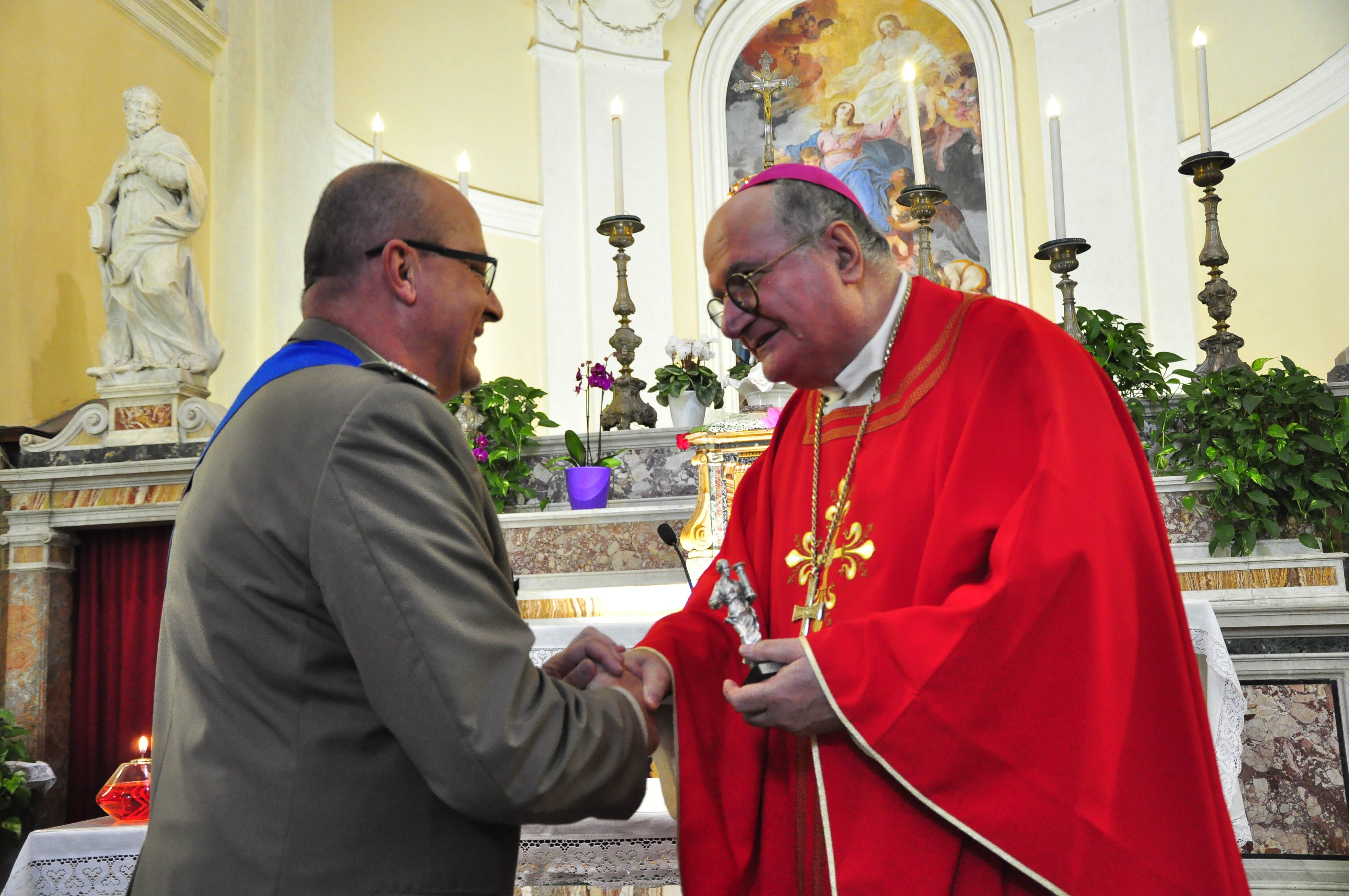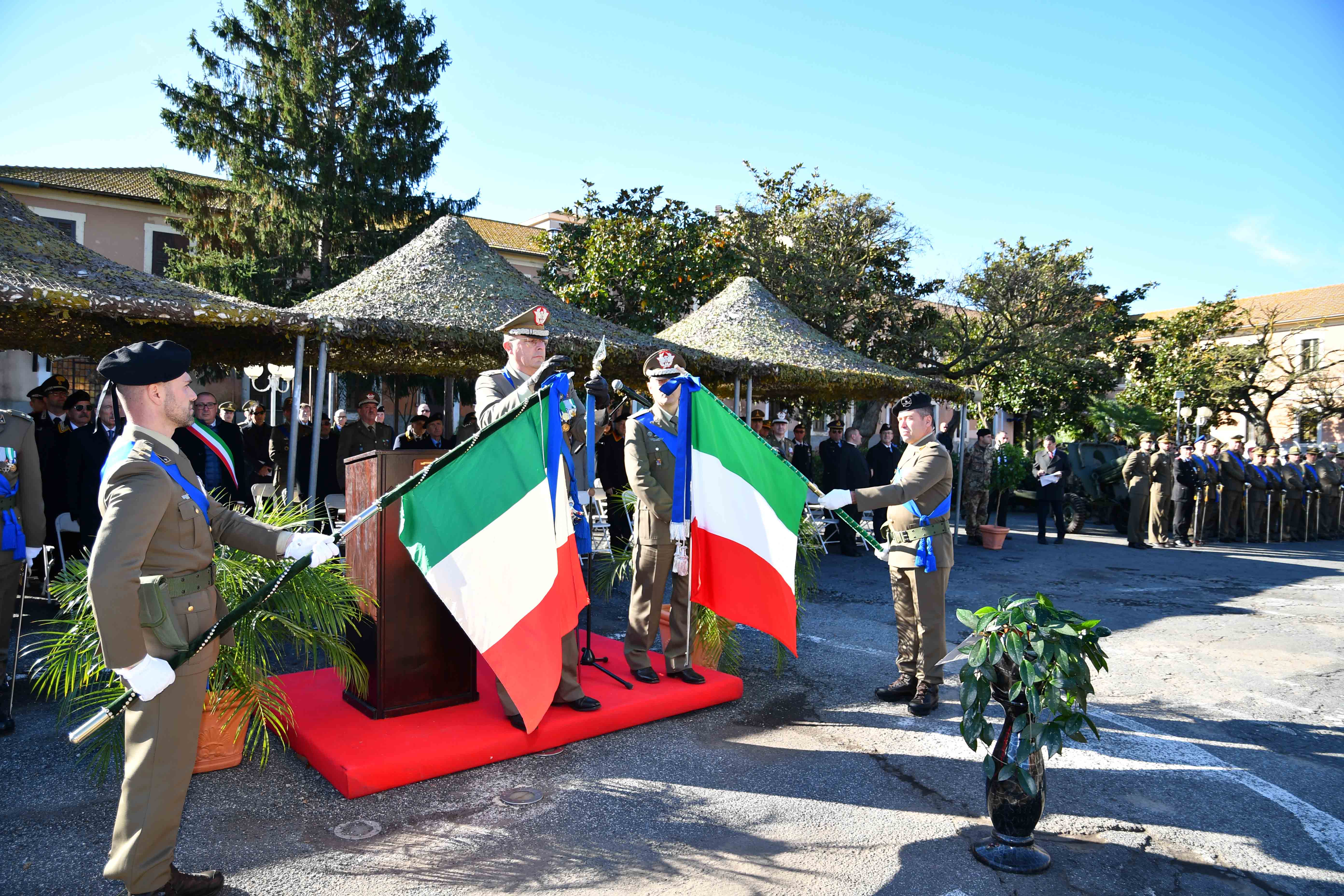 Inoltre, al termine della S. Messa, celebrata dal Vescovo della diocesi di Civita Castellana S.E. Mons. Romano Rossi, alla presenza del Comandante delle Forze Operative Terrestri di Supporto Generale di Corpo D’Armata Giuseppenicola Tota, del Comandante del Comando di Artiglieria Generale di Brigata Fabio Giambartolomei e del Comandante del Comando Artiglieria Contraerei Generale di Brigata Fabrizio Argiolas, ha avuto luogo nella piazza d’armi della Caserma “COSENZ” la cerimonia del cambio del drappo della Bandiera di Guerra del Comando Artiglieria.