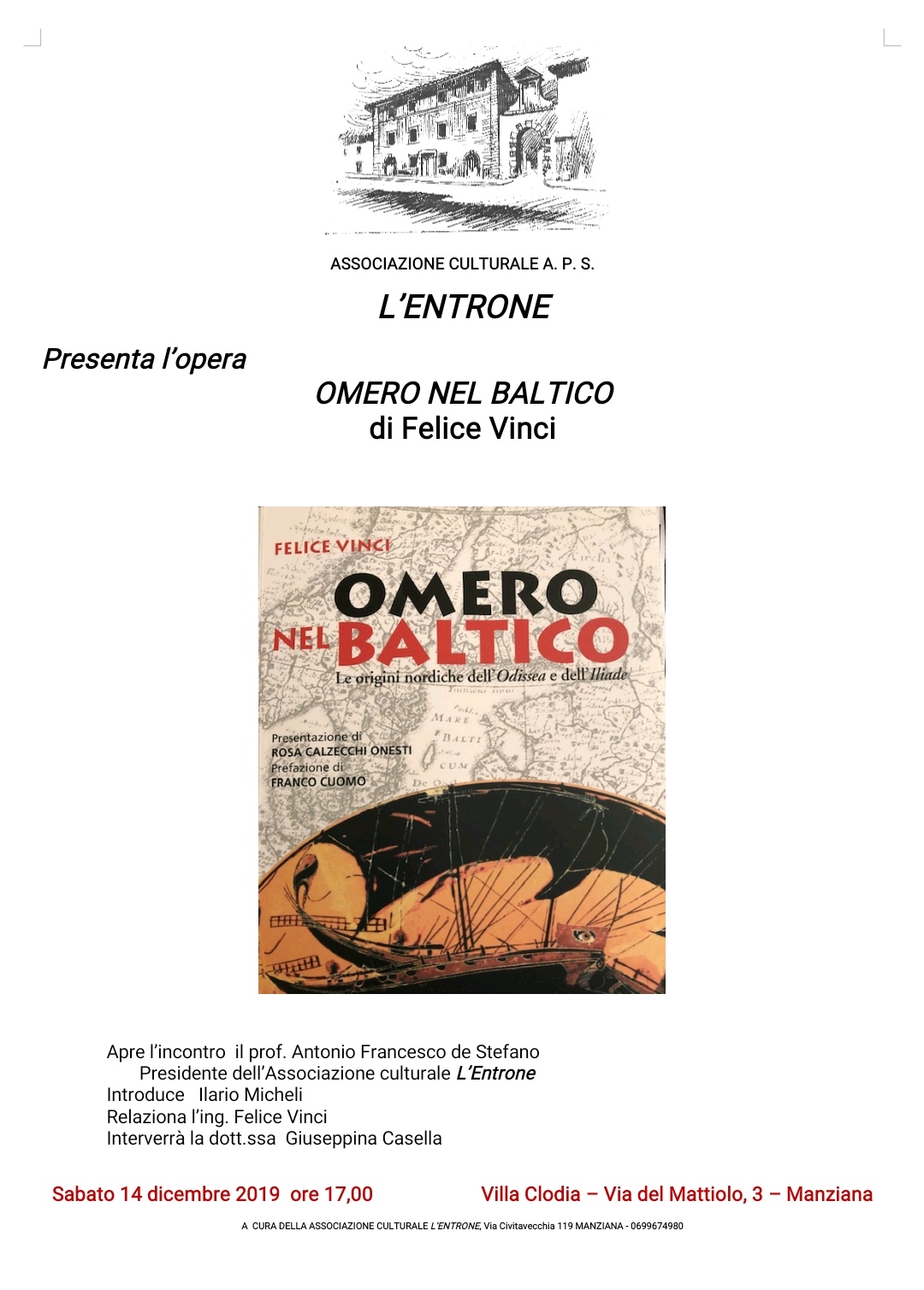 A Manziana l’associazione culturale “L’Entrone” presenta il libro “Omero nel Baltico” di Felice Vinci