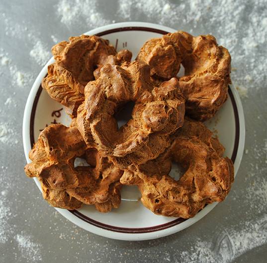 La storia ricetta della Ciambella scottolata di Cori risale agli anni ’50 quando una coppia del paese prese in gestione un piccolo forno a legna nel centro storico. L’impasto impiega pochi e semplici ingredienti: farina 00, uova, olio e zucchero. Il termine deriva dalla tecnica di produzione che prevede una doppia cottura, prima in acqua e poi in forno. La ciambella, di colore marrone, ha la forma di un fiore, di grandi dimensioni, e si caratterizza per leggerezza, friabilità e croccantezza. Completano il profilo organolettico l’elevata intensità olfattiva con note di farina, olio e uovo, abbinate a sentori di tostato. Al gusto si presenta dolce, ma non troppo, in quanto povera di zucchero, e con una lieve nota salata.