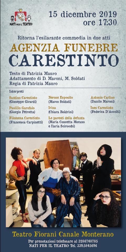 Il 15 dicembre ore 17:30 presso il Teatro Fiorani di Canale Monterano, torna l’esilarante commerdia in due atti de “Agenzia funebre Carestinto