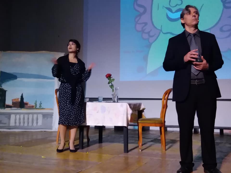L’attrice Giulia Morgani, in questa edizione, ha saputo interpretare con grande bravura tutto il dramma del personaggio regalando forti emozioni al pubblico intervenuto alla sala Cinema dell’ex Consorzio Agrario. Un allestimento semplice ma d’effetto perché la platea ha potuto ammirare da vicino tutta la carrellata d’artisti chiamata a ricordare la grande interprete del teatro italiano. A fianco all’attrice Morgani si è rilevato un ottimo Domenico Soriano, l’attore registra Fabrizio Catarci. Hanno poi mostrato piena maturità artistica tutti i coristi ed i solisti Raffaela Agozzino ed Enrico Biferari dei St John’s Singers dimostrando, dopo decenni di concerti, di saper padroneggiare oltre a repertorio gospel anche quello napoletano. Bravissima, come sempre, il direttore del coro Alessandra Paffi. Ha poi destato molto interesse la messa in scena, su musiche di Pier Michele Bertaina, delle composizioni di Titina nell’interpretazione dell’attore Fausto Cassi e del soprano Vania Pietrobattista, per l’accompagnamento del maestro Alessandro Aloisi. Ad aprire la serata, presentata con professionalità da Alessandra Bertoldi, la testimonianza diretta di Mario Carlone, nipote di Titina, che ha raccontato sue pagine di vita trascorse affianco della zia, con aneddoti sulla sua esperienza di artista in particolare di collage, ma anche di donna. Molto importante poi il racconto dello stesso Carlone sui rapporti che il grande drammaturgo Luigi Pirandello volle intessere con i tre fratelli tra i massimi esponenti della commedia dell’arte e non solo.