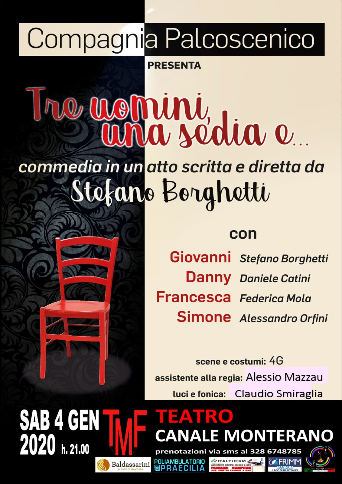 Il 4 Gennaio al teatro di Canale Monterano: “Tre uomini e una sedia”