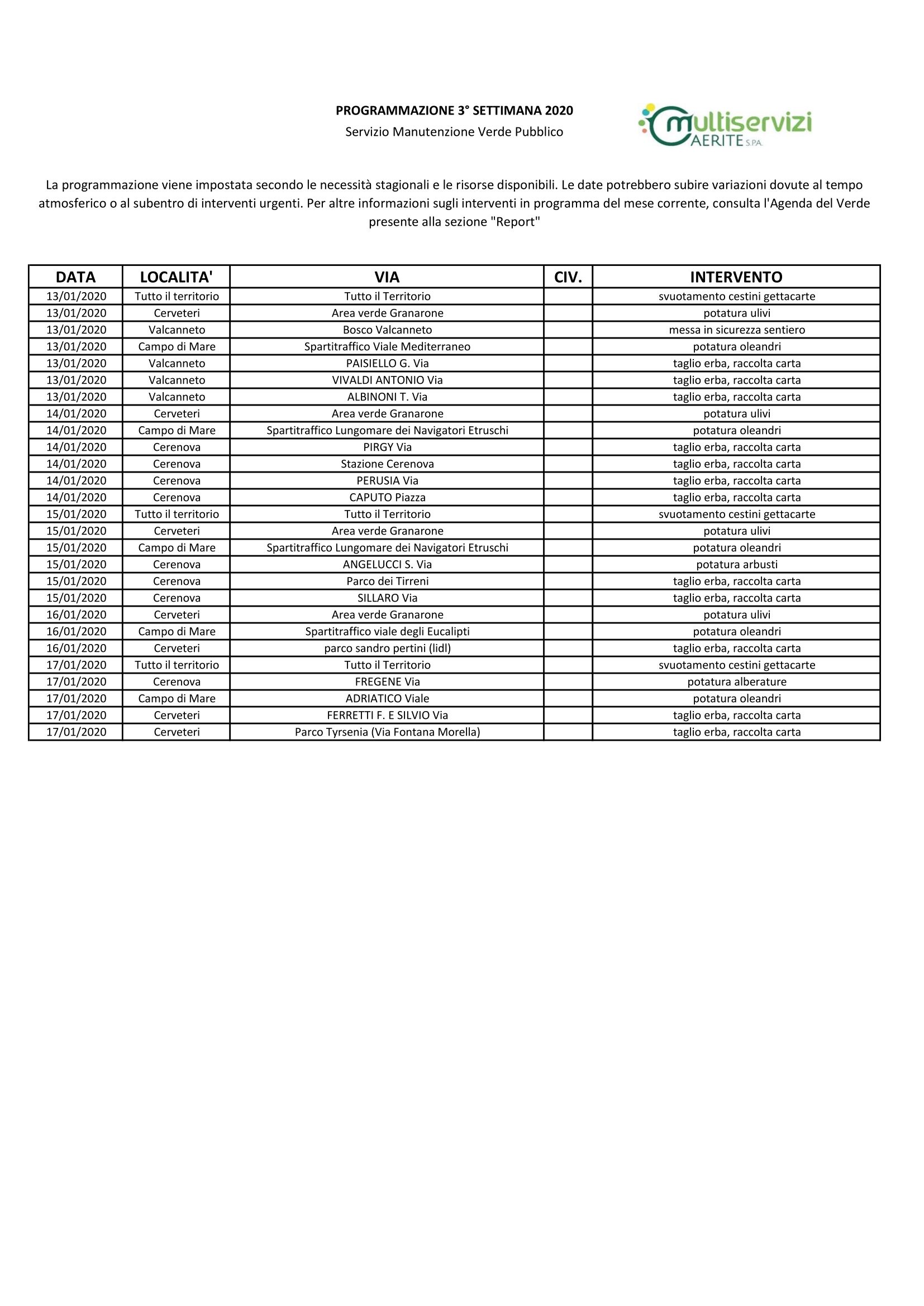 Lo comunica in una nota l’Ufficio Stampa di Multiservizi Caerite.