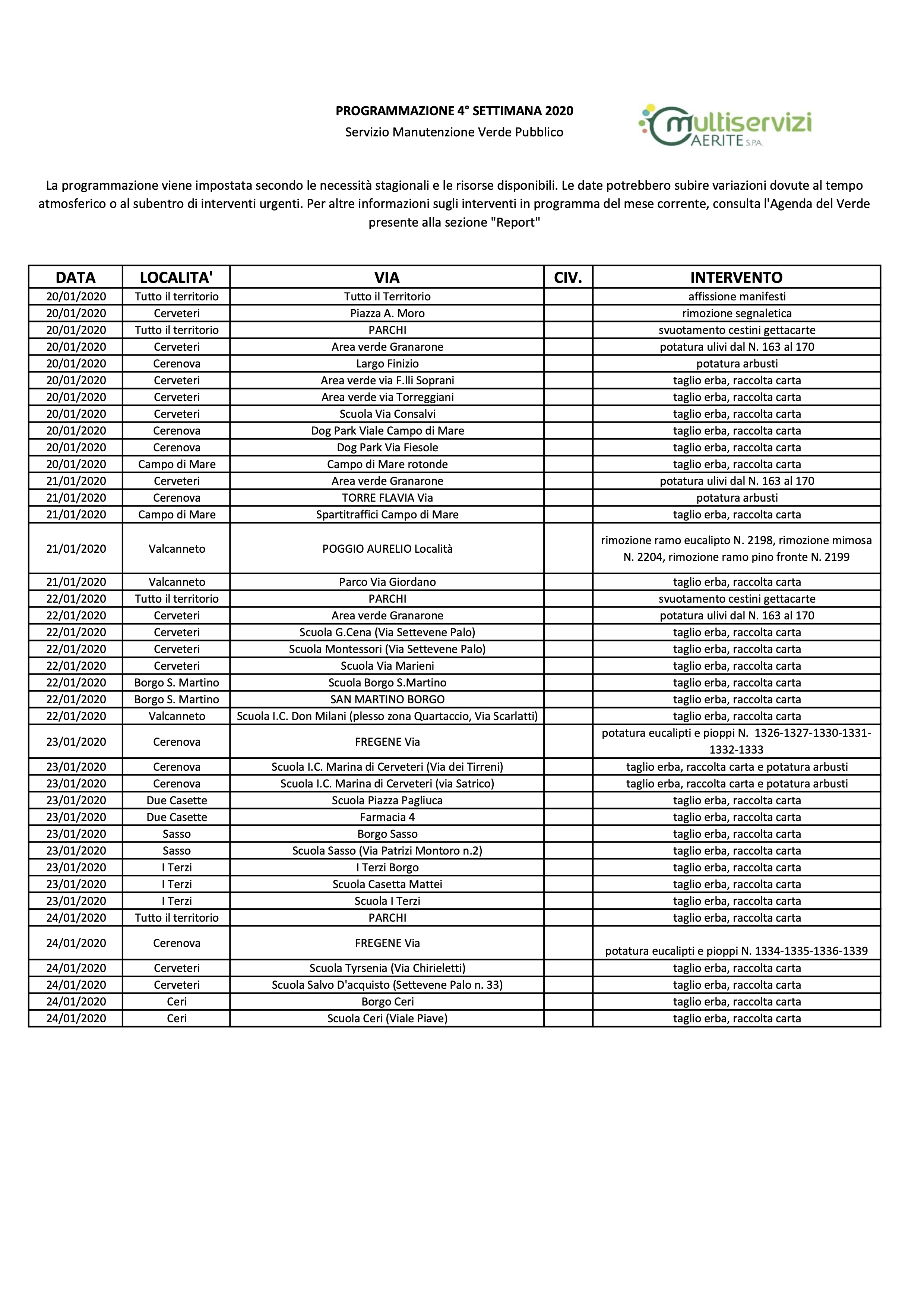 CERVETERI: MULTISERVIZI PUBBLICA PROGRAMMAZIONE INTERVENTI SUL VERDE