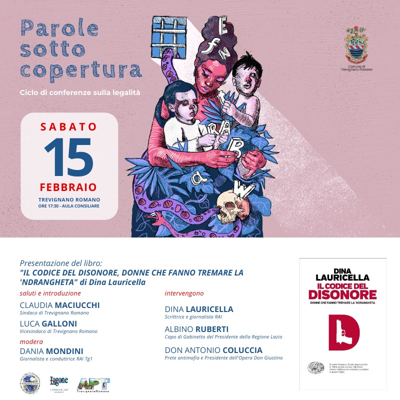 sabato 15 febbraio la presentazione del libro di Dina Lauricella “Il codice del disonore. Le donne che fanno tremare la ‘Ndrangheta”. Partecipano, insieme all’autrice, Don Antonio Coluccia, Albino Ruberti e Dania Mondini.