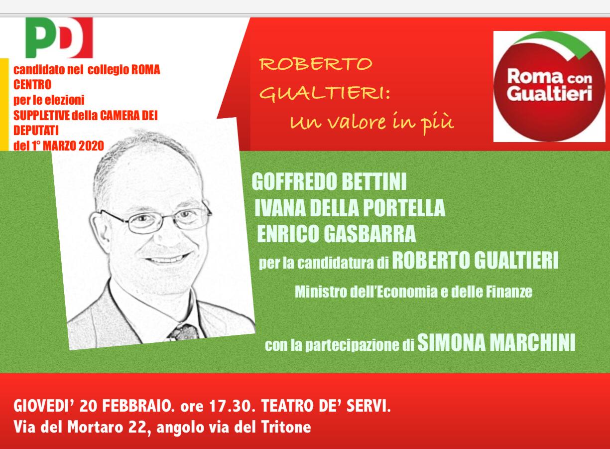 Roma PD Candidato Gualtieri, giovedì 20 febbraio ore 17:30 presso Teatro De Servi