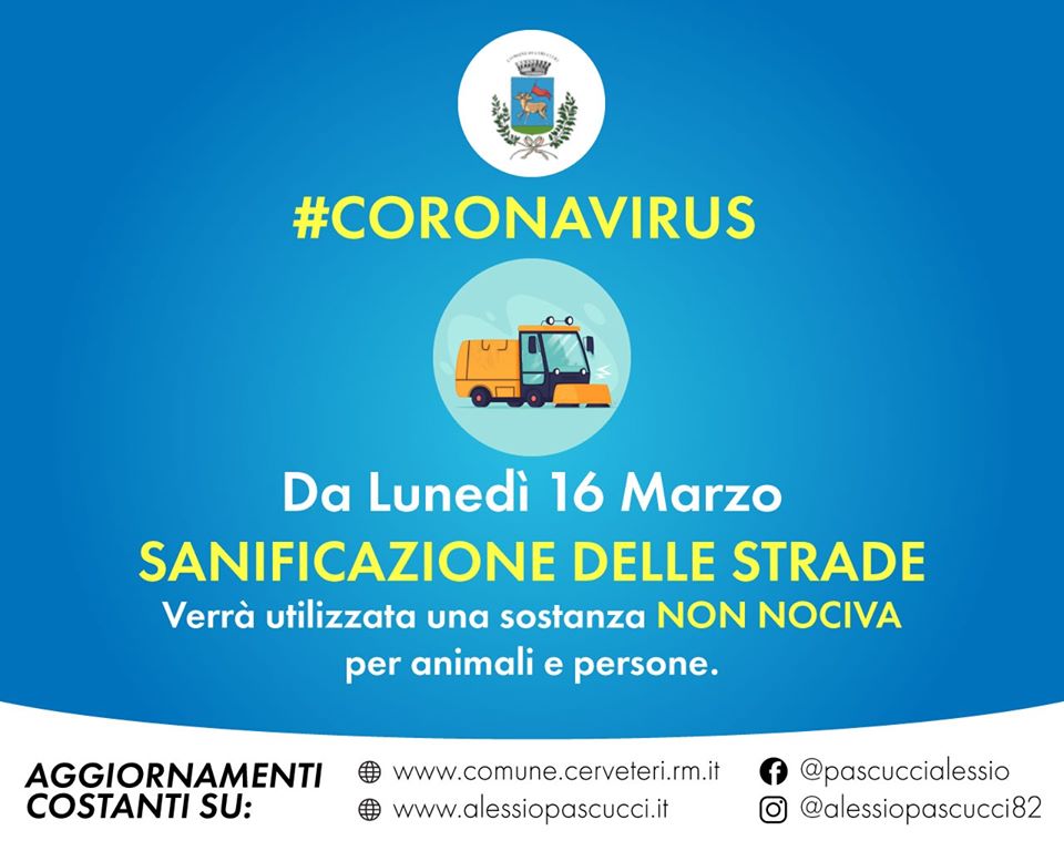 “Nell’ambito delle attività preventive messe in piedi dall’Amministrazione comunale di Cerveteri in questa fase di emergenza sanitaria del COVID-19, a partire da lunedì 16 marzo è stato predisposto un potenziamento del servizio di pulizia delle strade e un’attività di sanificazione dell’intera rete viaria cittadina”. Ad annunciarlo è Elena Gubetti, Assessora alle Politiche Ambientali del Comune di Cerveteri.