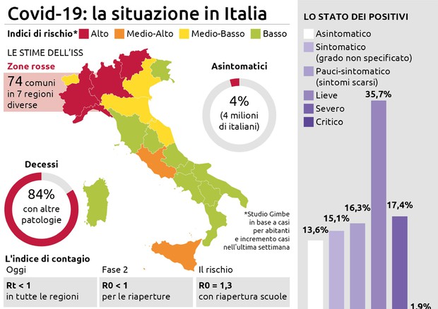Dai dati della Protezione civile emerge che sono 36.211 i malati in Lombardia (89 in più rispetto a ieri), 9.563 in Emilia-Romagna (-2.299), 15.493 in Piemonte (-28), 8.147 in Veneto (-222), 5.584 in Toscana (-79), 3.551 in Liguria (-25), 3.210 nelle Marche (-137), 4.468 nel Lazio (-67), 2.773 in Campania (-9), 1.370 nella Provincia di Trento (-93), 2.949 in Puglia (+22), 1.170 in Friuli Venezia Giulia (-57), 2.157 in Sicilia (+12), 1.915 in Abruzzo (-61), 802 nella provincia di Bolzano (-43), 233 in Umbria (-28), 744 in Sardegna (-17), 740 in Calabria (-13), 89 in Valle d’Aosta (-46), 192 in Basilicata (-2), 190 in Molise (-3). Quanto alle vittime, se ne registrano 13.772 in Lombardia (+93), 3.551 in Emilia-Romagna (+39), 3.066 in Piemonte (+63), 1.459 in Veneto (+22), 842 in Toscana (+15), 1.167 in Liguria (+15), 906 nelle Marche (+7), 441 nel Lazio (+10), 359 in Campania (+0), 418 nella provincia di Trento (+2), 415 in Puglia (+5), 289 in Friuli Venezia Giulia (+4), 235 in Sicilia (+3), 320 in Abruzzo (+5), 275 nella provincia di Bolzano (+1), 67 in Umbria (+1), 116 in Sardegna (+0), 86 in Calabria (+0), 137 in Valle d’Aosta (+0), 25 in Basilicata (+0), 21 in Molise (+0). Ad oggi sono stati effettuati 1.979.217 tamponi che hanno riguardato complessivamente 1.354.901 persone. L’incremento del numero dei tamponi rispetto a ieri è di 68.456.