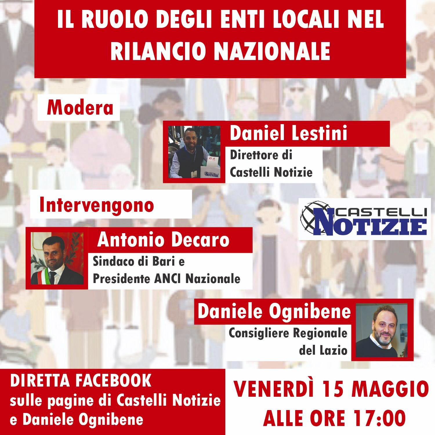 sul tema degli enti locali con il Sindaco di Bari e Presidente nazionale dell’Anci Antonio Decaro. Modera l’incontro Daniel Lestini direttore Castelli Notizie.