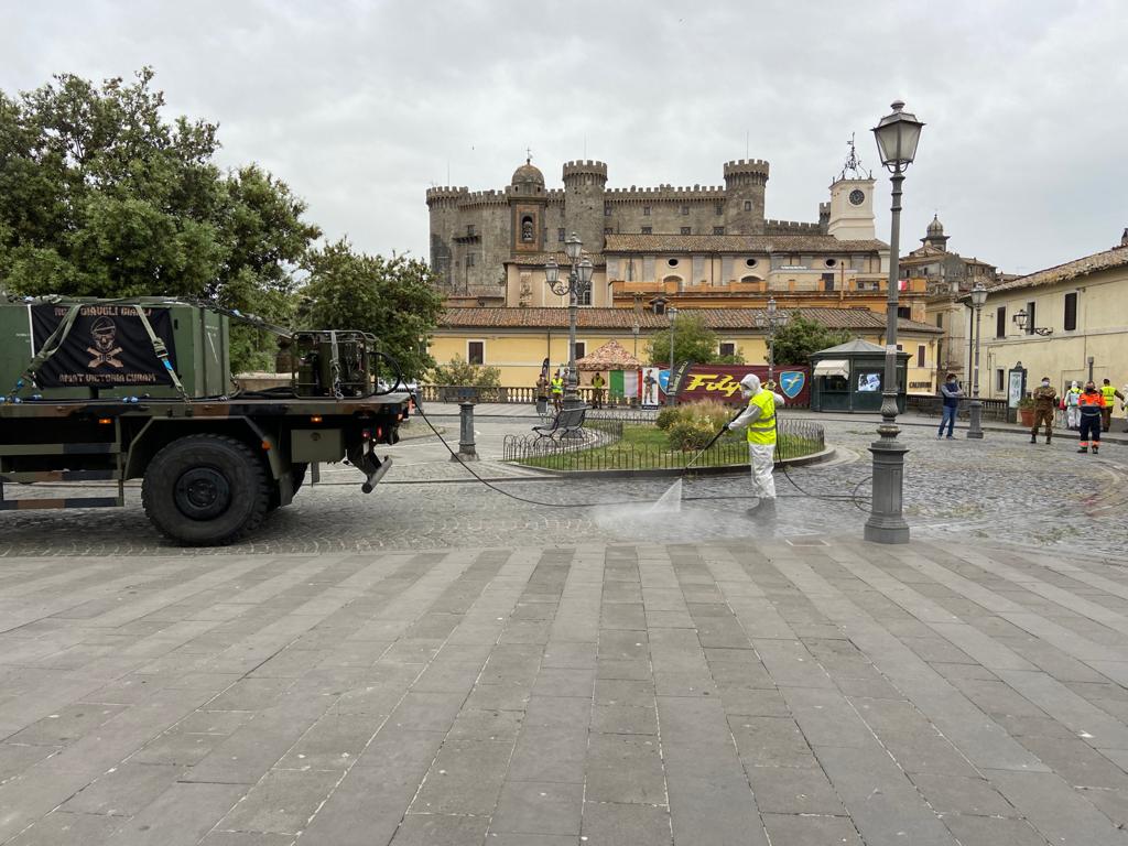 I Diavoli Gialli del 185° Reggimento Paracadutisti “Folgore” hanno accolto la richiesta del Sindaco Armando Tondinelli di fronteggiare insieme il Coronavirus, sanificando le strade e le aree pubbliche del Comune di Bracciano.