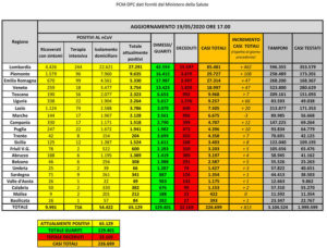 Nel dettaglio – secondo i dati diffusi dalla Protezione Civile -, gli attualmente positivi sono 27.291 in Lombardia (+218), 9.635 in Piemonte (-239), 5.330 in Emilia-Romagna (-195), 3.754 in Veneto (-250), 2.323 in Toscana (-250), 2.264 in Liguria (-75), 3.786 nel Lazio (-40), 2.178 nelle Marche (-137), 1.518 in Campania (-155), 204 nella Provincia autonoma di Trento (-44), 1.941 in Puglia (-54), 1.524 in Sicilia (-15), 600 in Friuli Venezia Giulia (-21), 1.389 in Abruzzo (-24), 308 nella Provincia autonoma di Bolzano (-1), 66 in Umbria (-11), 341 in Sardegna (-39), 49 in Valle d’Aosta (-11), 382 in Calabria (-19), 84 in Basilicata (-9), 212 in Molise (-5). Quanto alle vittime, sono in Lombardia 15.597 (+54), Piemonte 3.679 (+47), Emilia-Romagna 3.997 (+11), Veneto 1.820 (+17), Toscana 992 (+3), Liguria 1.376 (+9), Lazio 640 (+12), Marche 986 (+2), Campania 399 (+0), Provincia autonoma di Trento 455 (+2), Puglia 473 (+2), Sicilia 268 (+1), Friuli Venezia Giulia 320 (+0), Abruzzo 389 (+1), Provincia autonoma di Bolzano 291 (+0), Umbria 74 (+1), Sardegna 126 (+0), Valle d’Aosta 143 (+0), Calabria 95 (+0), Basilicata 27 (+0), Molise 22 (+0). I tamponi effettuati sono 3.104.524, con un incremento di 63.158 rispetto a ieri. Le persone sottoposte a tampone sono 1.999.599.