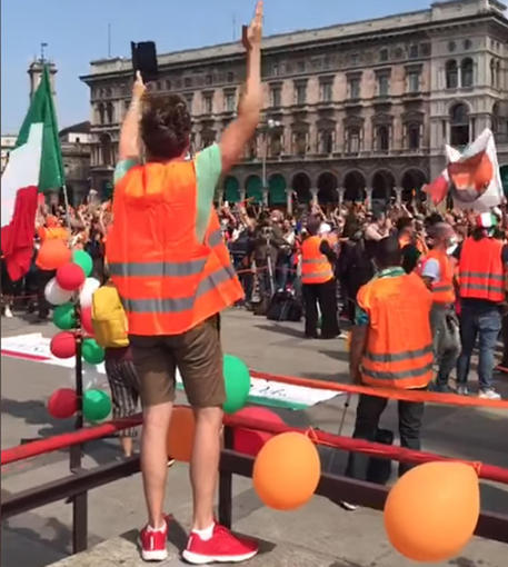 Qualche centinaio di persone si sono radunate in mattinata in Piazza Duomo a Milano per una manifestazione dei ‘gilet arancioni‘, un movimento di protesta che chiede, tra l’altro, il ritorno alla “lira italica” e un “governo votato dal popolo”.