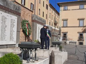 Una cerimonia ristretta ed intima quella che si è svolta questa mattina a Bracciano in occasione della ricorrenza della Festa della Repubblica. In una piazza IV Novembre deserta ed assolata, alle 9.30 il parroco di Bracciano, don Piero Rongoni, ha benedetto una corona d’alloro deposta davanti al Monumento ai Caduti delle Prima e della Seconda Guerra Mondiale. Presenti il Comandante del Corpo di Polizia Intercomunale, Claudio Pierangelini, il vicesindaco Luca Testini, l’assessore alla cultura, Claudia Marini, insieme a loro un rappresentante dell’ANPI, Dario Cavinato. Sono state affidate ad un lungo momento di silenzio e ad una personale preghiera dei presenti le tante parole che potevano dirsi sulla Costituzione, sulla nostra Storia, su quello che l’Italia vive e vivrà.