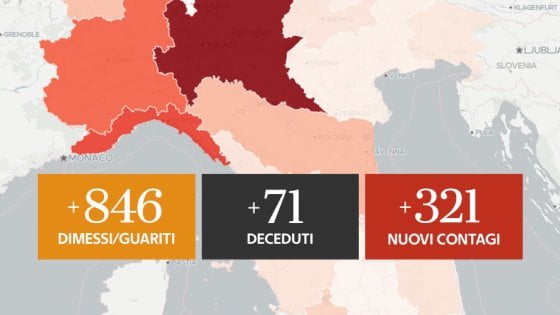 Oggi i morti sono stati 71 di cui 29 in Lombardia: