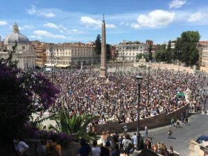 Dopo le iniziative di ieri in tante città italiane (oltre che d’Europa), la protesta che sta infiammando gli Stati Uniti sbarca anche a Roma: a migliaia, soprattutto ragazzi e famiglie, stanno manifestando a piazza del Popolo contro ogni razzismo.