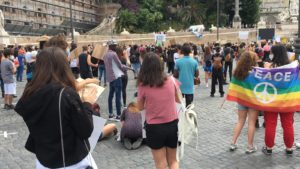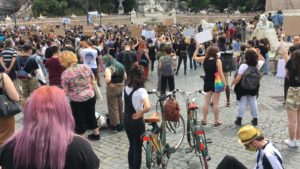 In tantissimi, infatti, hanno accolto l’appello lanciato sui social da un vasto cartello di organizzazioni tra cui i Giovani Europeisti Verdi, Fridaysforfuture-Roma, Nibi: Neri italiani – Black italians, 6000 sardine, Extinction Rebellion Rome International, American Expats for Positive Change e Women’s March Rome.