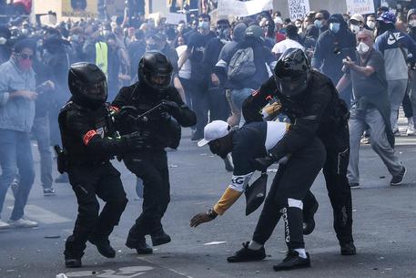 e per chiedere giustizia per Adama Traoré, il francese morto nel 2016 durante un fermo di polizia, ha raggiunto le 15.000 persone. La tensione continua, nella piazza non viene rispettata alcuna regola di distanziamento, ci sono continue cariche della polizia, lancio di sassi e sampietrini contro gli agenti e risposta con una pioggia di lacrimogeni. La folla viene invitata a lasciare la piazza attraverso le strade indicate dagli agenti per sciogliere l’assembramento, vietato in questo periodo di riapertura dopo il lockdown. Gruppi di black-bloc continuano a tentare lo sfondamento in direzione del percorso previsto dai manifestanti, ma non autorizzato, verso place de l’Opèra. A gruppi, quando si placano gli scontri, i manifestanti si inginocchiano e intonano slogan contro la polizia, per Adama Traoré e George Floyd.