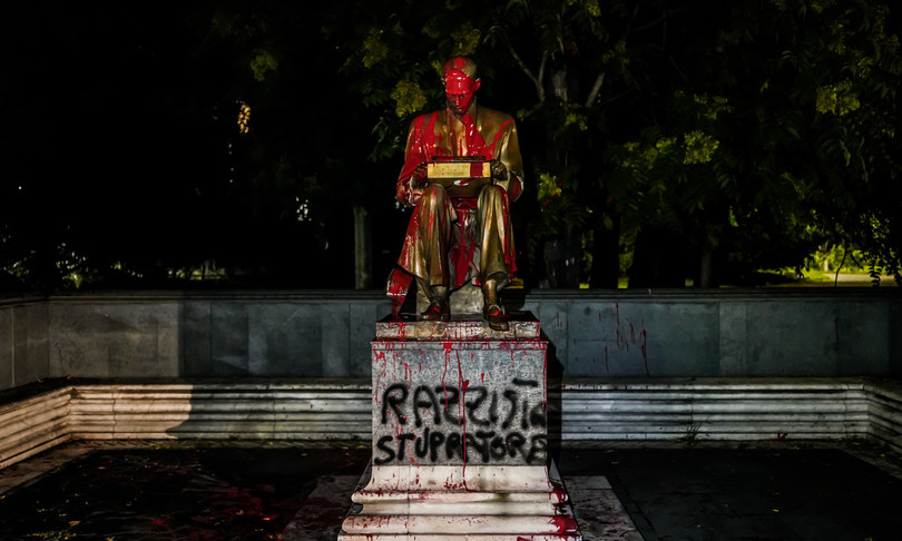 sulla statua è stata trovata una scritta “Razzista stupratore“.