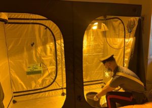 Nel corso della successiva perquisizione, i militari hanno trovato anche una serra artigianale, ricavata nella stanza da letto, 66 gr. di “erba” contenuti in un barattolo e tutto il materiale per la coltivazione della droga.