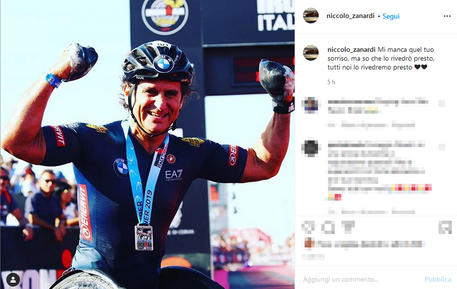 “Mi manca quel tuo sorriso, ma so che lo rivedrò presto, tutti noi lo rivedremo presto”. Così un nuovo post di Niccolò Zanardi su Instagram, con una foto del padre Alex sorridente ed esultante a braccia alzate all’arrivo di una gara ciclistica. Il post è comparso intorno alle 3 della notte sul profilo del giovane. Due giorni fa aveva postato una foto in cui stringeva la mano del babbo nel letto dell’ospedale di Siena.