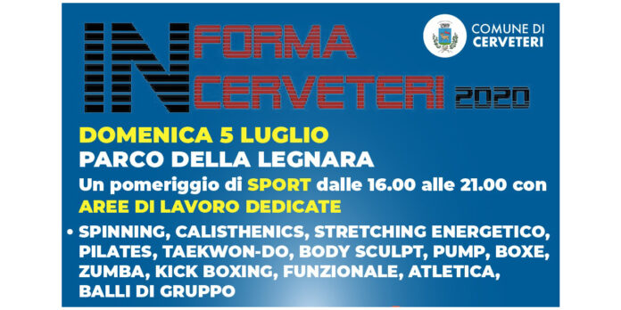 La voglia di tornare a fare sport. Con questo spirito, l’Assessorato allo Sport del Comune di Cerveteri propone l’iniziativa “InForma Cerveteri 2020”, un pomeriggio dedicato all’attività motoria all’aperto nella cornice del Parco della Legnara, che si svolgerà domenica 5 luglio a partire dalle ore 16:00.