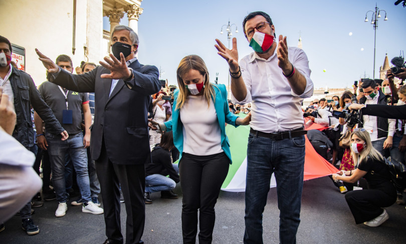 Il centrodestra è tornato in piazza per protestare contro le politiche del governo nella prima vera manifestazione da inizio pandemia. Senza bandiere o simboli di partito, la coalizione si è ritrovata, a partire dalle 10, in piazza del Popolo, a Roma, sotto lo slogan ‘Insieme per l’Italia del lavoro’. Sul palco, il vice presidente di Forza Italia Antonio Tajani, la presidente di Fratelli d’Italia Giorgia Meloni e, a chiudere, il segretario leghista Matteo Salvini; in piazza, i militanti dei tre partiti rigorosamente ‘distanziati’ nel rispetto delle norme anti-contagio da Covid 19.