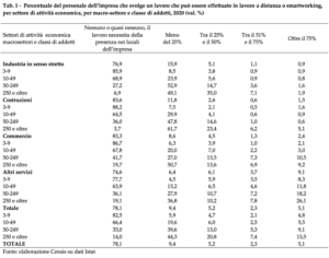 50% dei dipendenti che operano in settori dove esistono meno vincoli ad operare da remoto, si arriva a valutare il fenomeno in poco più di 2,8 milioni di lavoratori.