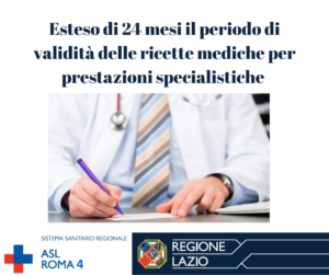 E’ stato esteso a 24 mesi il periodo di validità della ricetta per prescrizioni di prestazioni specialistiche erogabili in regime ambulatoriale.