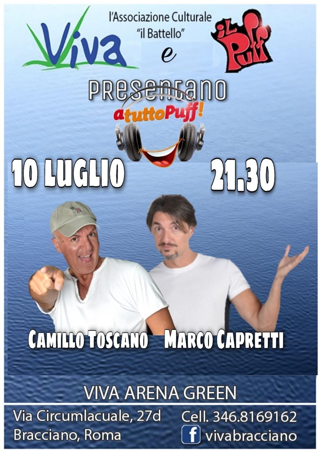 Vi aspettiamo venerdì 10 Luglio a partire dalle 21.30 all’Arena Green, per una grande serata di divertimento in compagnia di Camillo Toscano e Marco Capretti!
