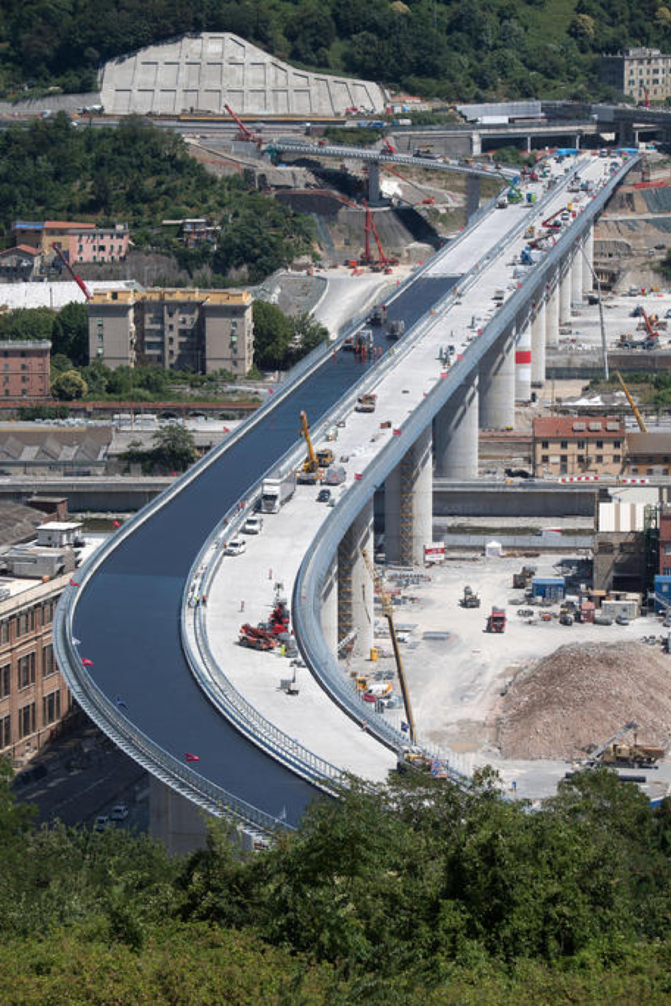 Intanto, sono iniziate in mattinata le operazioni di stesura del primo strato di asfalto sul nuovo viadotto sul Polcevera a Genova.
