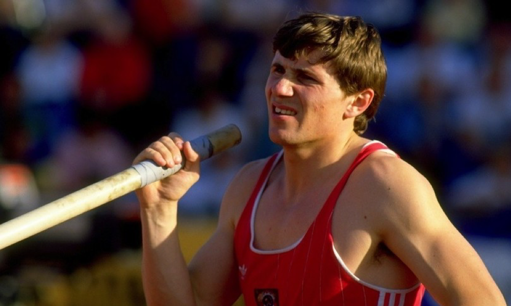 Oggi quello che tutti noi abbiamo soprannominato lo ‘Zar dell’asta’ (alcuni anche ‘Sputnik’) ha 56 anni. Nella sua lunga carriera ha indossato la canottierina di tre Nazioni, Unione Sovietica (fino al 1991), Comunità Stati Indipendenti nel 1992 e Ucraina (dal 1993), ha avuto un brutto rapporto con le Olimpiadi – comunque ha vinto quella di Seul ‘88 quando era ancora sovietico – ma si messo al collo tre ori mondiali. Ha avuto l’acume di costruire il suo mito migliorando i record mondiali centimetro dopo centimetro – ha stabilito per 35 volte il record mondiale della specialità (17 outdoor e 18 indoor) – arrivando fino a superare i 6 metri e 14 centimetri all’aperto (31 luglio 1994 al Sestriere) e i 6 e 15 al coperto (21 febbraio 1993 a Donetsk).