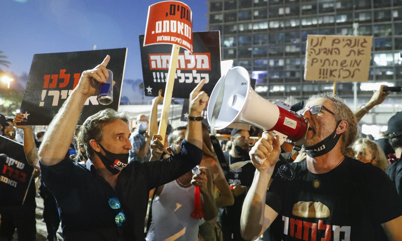Circa 10.000 israeliani hanno manifestato in piazza Rabin a Tel Aviv per chiedere più aiuti economici al governo durante la crisi causata dalla pandemia del coronavirus, arrivata nel Paese a una seconda ondata, anche peggiore della prima.