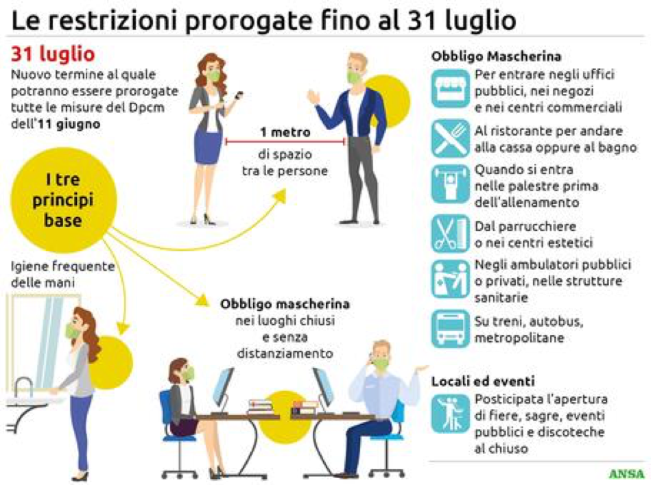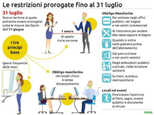 Intanto, martedì il governo approverà un nuovo dpcm per confermare il pacchetto di misure che scadono il 14 luglio (dalla stretta della movida ai voli) fino a fine mese e che ancora vengono ritenute necessarie per evitare che il Covid torni a diffondersi pericolosamente. A riferire in Parlamento quasi in contemporanea le decisioni adottate dall’Esecutivo sarà il ministro Roberto Speranza: il titolare della Salute si presenterà martedì sera in Aula a Montecitorio (la volta precedente era stato in Senato) e illustrerà il provvedimento.