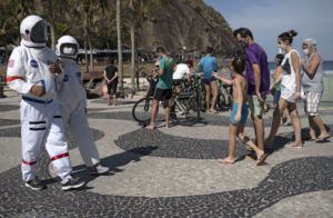 A mali estremi, estremi rimedi: in Brasile, secondo Paese al mondo maggiormente colpito dal Covid-19, per proteggersi dal virus fuori controllo una coppia ha deciso di andare in giro indossando una tuta da astronauta.