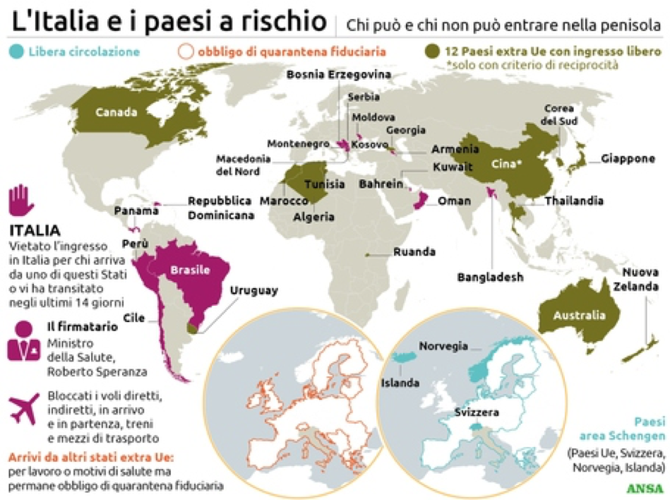 “Chi è stato negli ultimi 14 giorni in questi territori – ha affermato Speranza – ha il divieto di ingresso e transito in Italia. Nel mondo l’epidemia è nella fase più dura. Serve la massima prudenza per difendere i progressi che abbiamo fatto finora”.