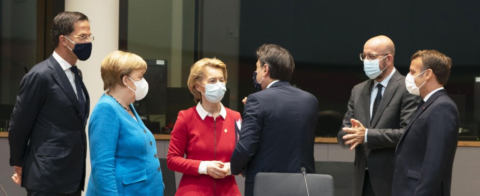La bozza era stata pre-negoziata nella notte prima con un incontro a tre tra Merkel, Macron e Conte finita alle tre del mattino e poi con una colazione di lavoro alla quale ai leader di Germania, Francia e Italia si erano aggiunti l’olandese Rutte, lo spagnolo Sanchez e i vertici delle istituzioni, Michel e Von der Leyen.