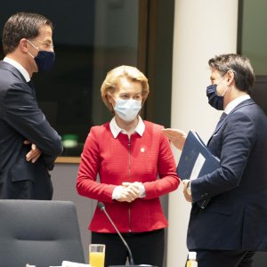 In giornata il premier italiano ha incontrato, a margine del vertice, il presidente della commissione Ue Ursula von der Leyen e lo stesso Rutte.