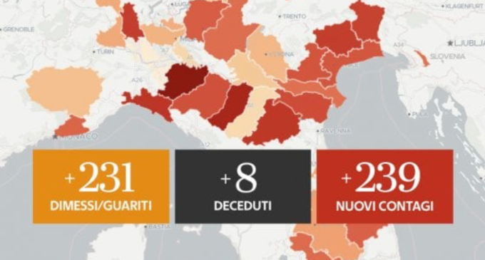 Sono 8 e tutte in Lombardia le vittime nelle ultime 24 ore per coronavirus, in lieve aumento rispetto a ieri, quando il dato era di 5. Il totale dei morti dall’inizio della pandemia arriva così a 35.154.