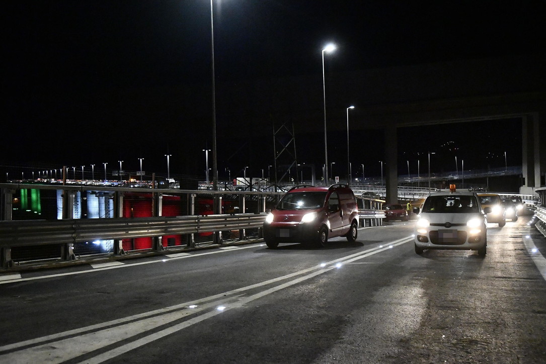 E’ stato aperto al traffico alle 22 il nuovo viadotto sul Polcevera Genova-San Giorgio. Dopo l’ultima ispezione e il via libera da parte del commissario Marco Bucci e da Autostrade, con un ritardo di un paio d”ore a causa della asfaltatura in extremis di un piccolo tratto di viadotto dopo la cerimonia di lunedì, il ponte ha iniziato ufficialmente la sua vita, poco meno di due anni dopo il crollo del viadotto Morandi e il giorno dopo la cerimonia di inaugurazione con il presidente della Repubblica Sergio Mattarella. La gestione, per ora, resta ad Aspi, in attesa di capire cosa deciderà il governo sulla concessione. Il viadotto collega le due parti della città, ovest e est e di fatto le due riviere, e colma una emergenza infrastrutturale che aveva portato Genova a reinventarsi una viabilità alternativa con il completamento della tangenziale a mare, parallela all’autostrada A10 Genova-Savona su cui si trova il viadotto, intitolata a Guido Rossa.