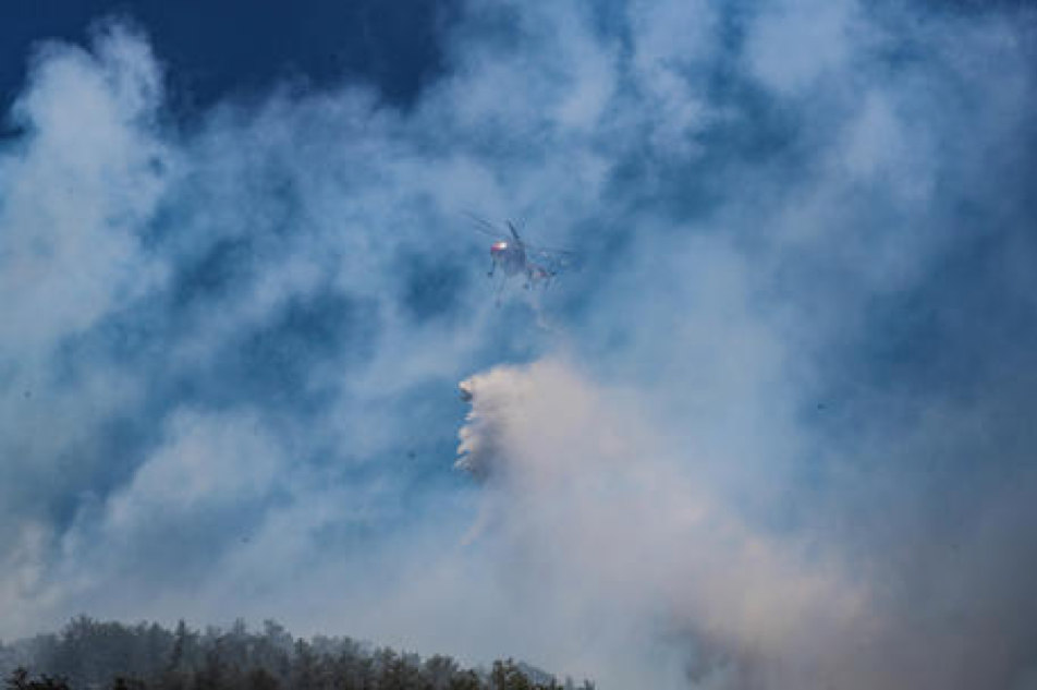 Ancora elicotteri sorvolano la zona per sganciare acqua, impiegate ancora 100 uomini a terra