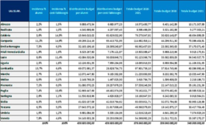 A proposito della ripartizione degli insegnanti supplenti – i primi 40.000 – c’è stata un’insistita polemica tra la ministra Lucia Azzolina e diversi assessori regionali. I docenti sono stati assegnati, per volontà della ministra, per metà tenendo conto del numero degli studenti presenti sul territorio e per l’altra metà seguendo le richieste avanzate dagli Uffici scolastici regionali. Come si può vedere dalla tabella, le richieste dal Sud sono state più forti e, rivelano alcuni sindacati, in alcune regioni settentrionali c’è stata una pressione dei provveditori sui dirigenti scolastici per calmierare, appunto, le richieste.