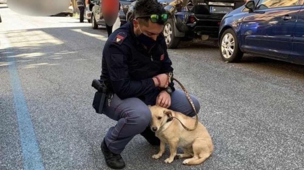 Il cane di circa un anno è stato notato dagli uomini del commissariato San Giovanni. Dopo aver cercato il padrone senza successo