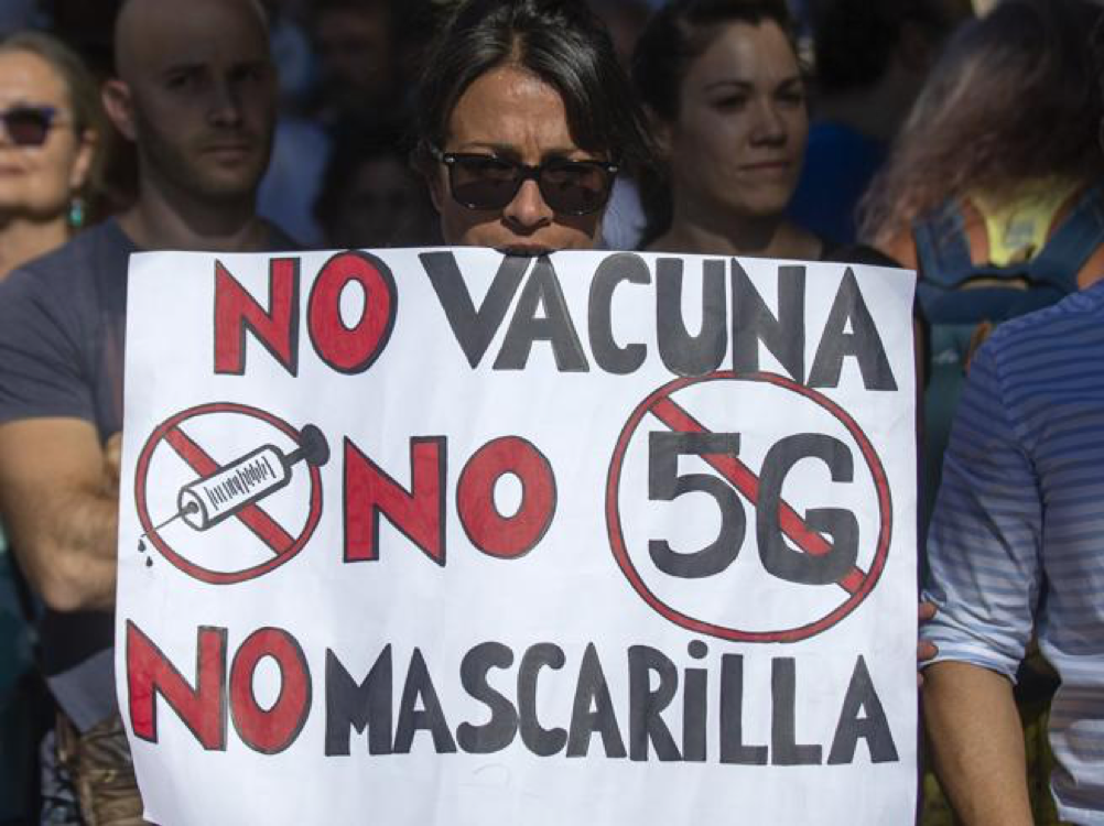 Una folla si è radunata sotto un’enorme bandiera spagnola gialla e rossa che sventola nella Plaza Colon, nel centro della capitale, in risposta agli appelli sui social media. I manifestanti espongono cartelli con slogan come «Il virus non esiste», «Le maschere uccidono» e «Non abbiamo paura».
