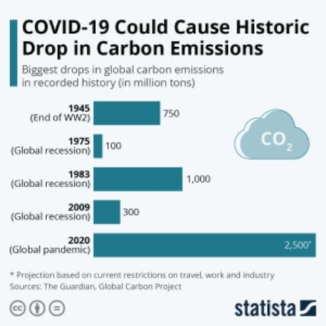 Lo stop forzato a trasporti, industrie e lavoro ha quasi azzerato la domanda di petrolio, e portato a un crollo senza precedenti delle emissioni di CO2.