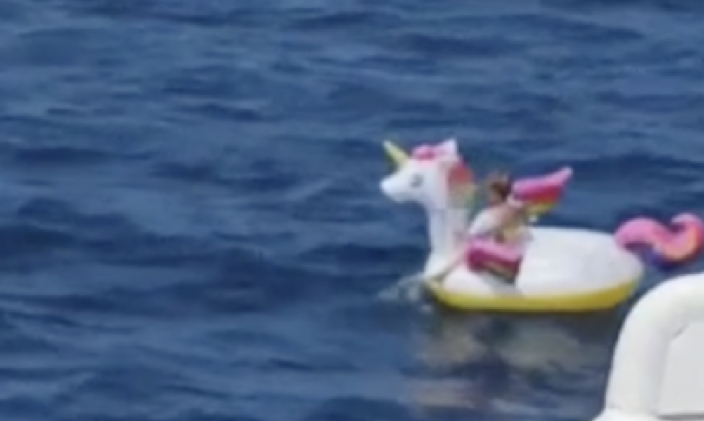 Stava giocando in acqua con i genitori ad una spiaggia vicino alla città greca di Antirrio, nel golfo di Corinto, quando la piccola è sfuggita all’attenzione degli adulti e la corrente ha preso a trascinarla verso il largo. Quando si sono accorti di quello che stava succedendo, i genitori terrorizzati hanno chiamato le autorità portuali, che a loro volto hanno inoltrato l’allarme ad un traghetto, la Salaminomachos: un video del salvataggio mostra la bambina tutta tranquilla adagiata sul suo colorato gonfiabile-unicorno mentre la nave le si avvicina con grande lentezza.