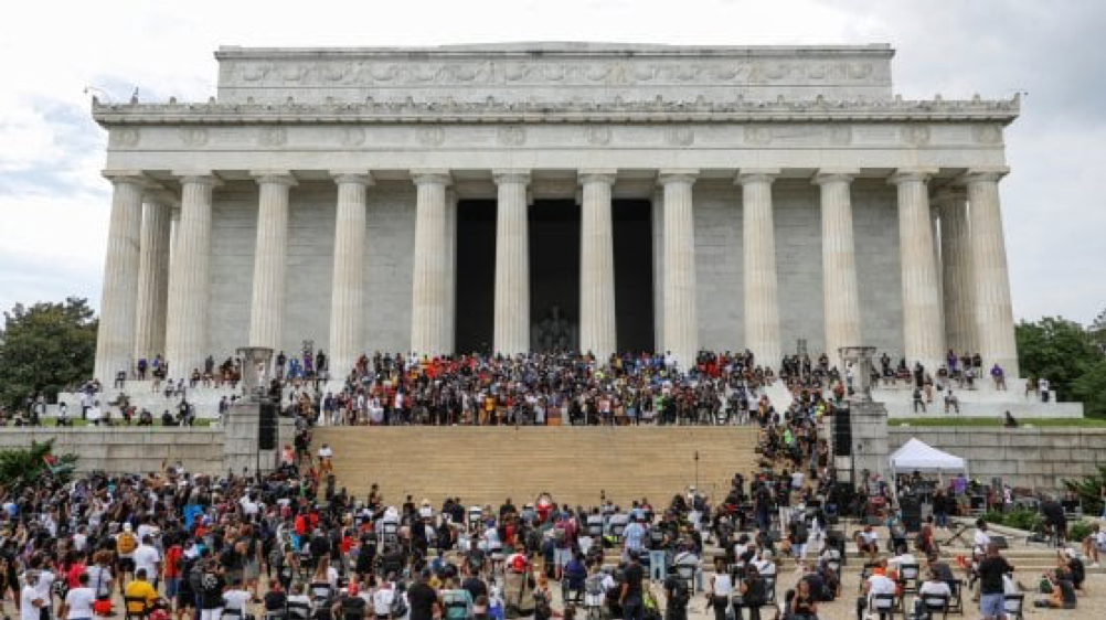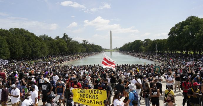 che 57 anni fa fece da sfondo all’iconico discorso del leader dei diritti civili. «Ecco a cosa somiglia la democrazia» gridano quando a mezzogiorno la manifestazione non è ancora iniziata ma la piazza è già piena. La manifestazione di quest’anno s’intitola “Marcia dell’impegno: metti giù il ginocchio dal mio collo”, in memoria della terribile morte di George Floyd, l’afroamericano soffocato da un poliziotto. Il nome di George risuona ovunque: in ogni canto, in ogni slogan. E in piazza ci sono pure i familiari di Jacob Blake, il cui ferimento a Kenosha ha scatenato altre proteste violente.