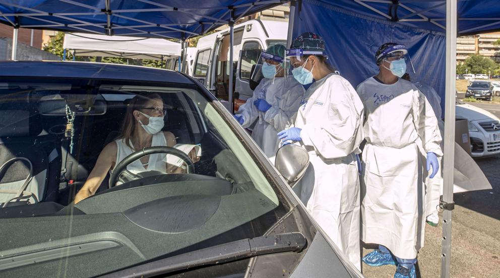 Una mujer bronceada baja la ventanilla de su Smart de dos plazas y se enciende un cigarrillo. Lleva la mascarilla colgando del cuello y espera con hastío que le permitan avanzar algún metro en la cola de decenas de coches que se aglomeran en el barrio de San Giovanni, en Roma. “Llevo una hora y media ya, qué le vamos a hacer”, protesta. Ella, que ha pasado una semana de vacaciones en Eivissa, es una de los centenares de personas que cada día acuden a hacerse pruebas de coronavirus en el punto drive-in organizado ante el hospital de San Giovanni. Es literalmente, un PCR sobre ruedas: enfermeros ataviados con todas las protecciones necesarias contra el virus les introducen directamente los bastoncillos en la nariz y la boca dentro de los vehículos particulares de los usuarios.